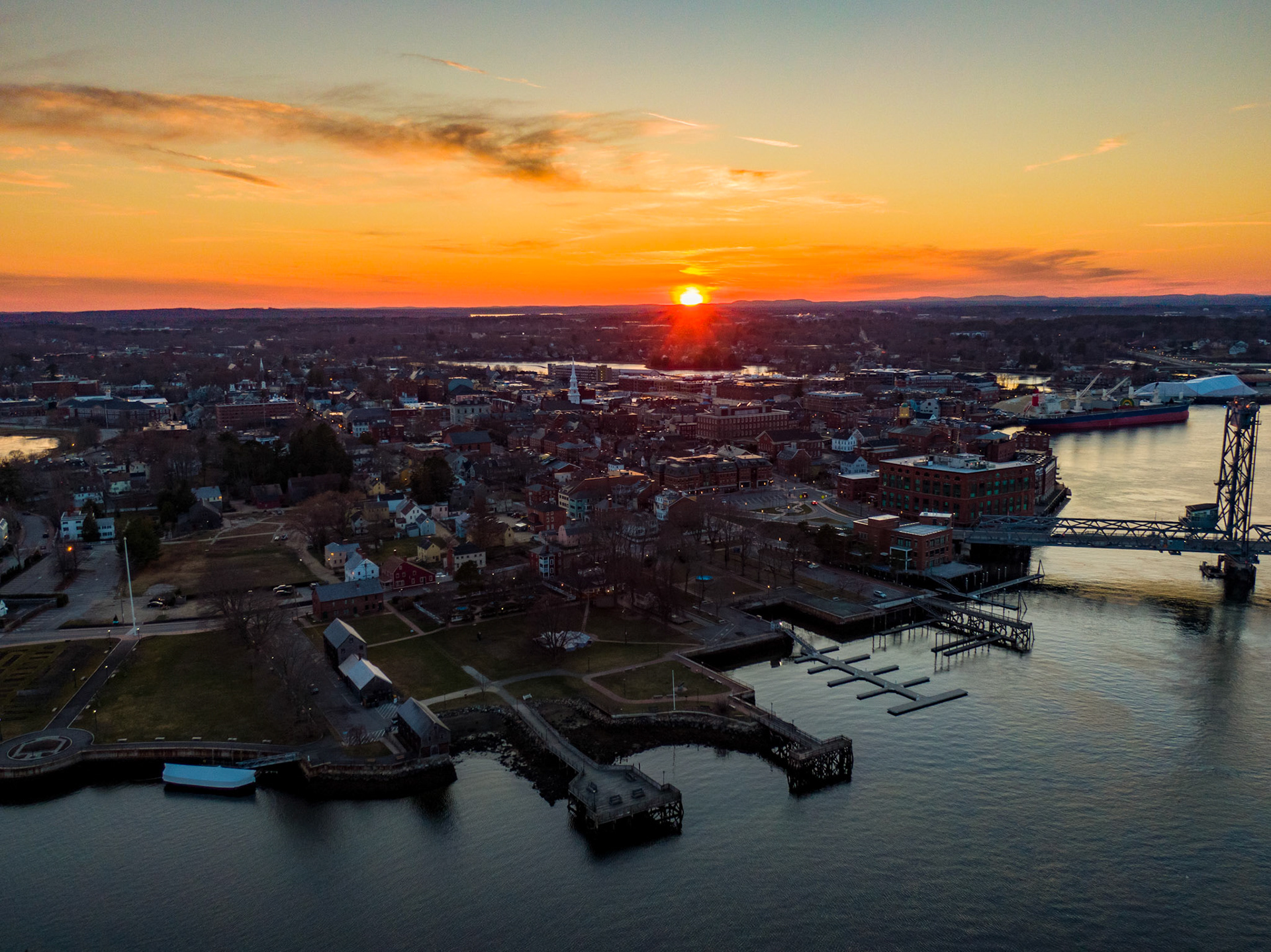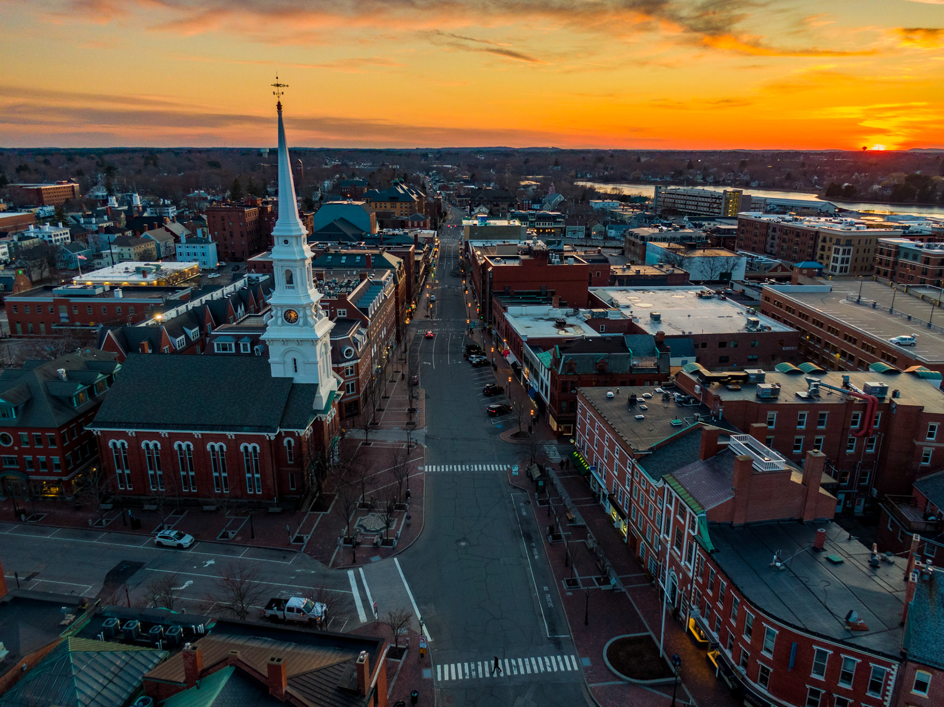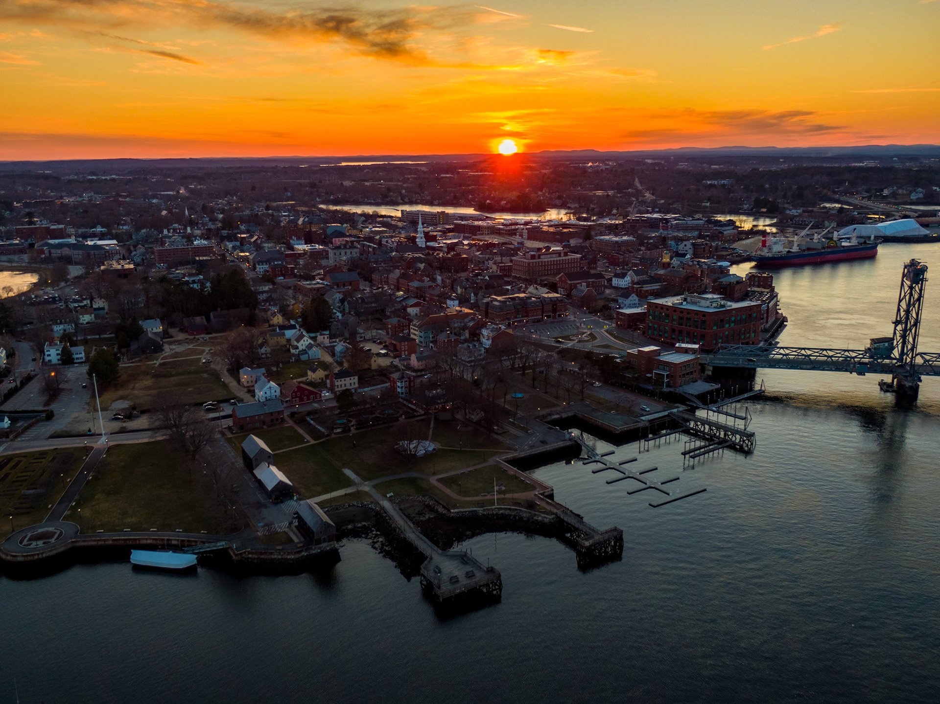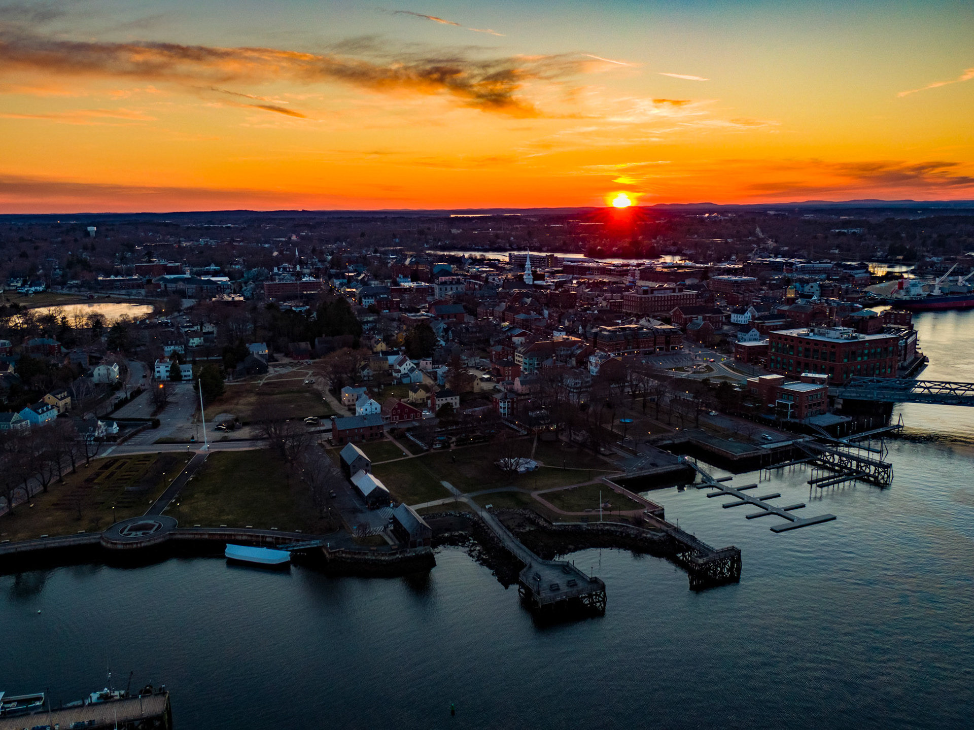 Downtown Portsmouth was photographed during sunset on March 22, 2020