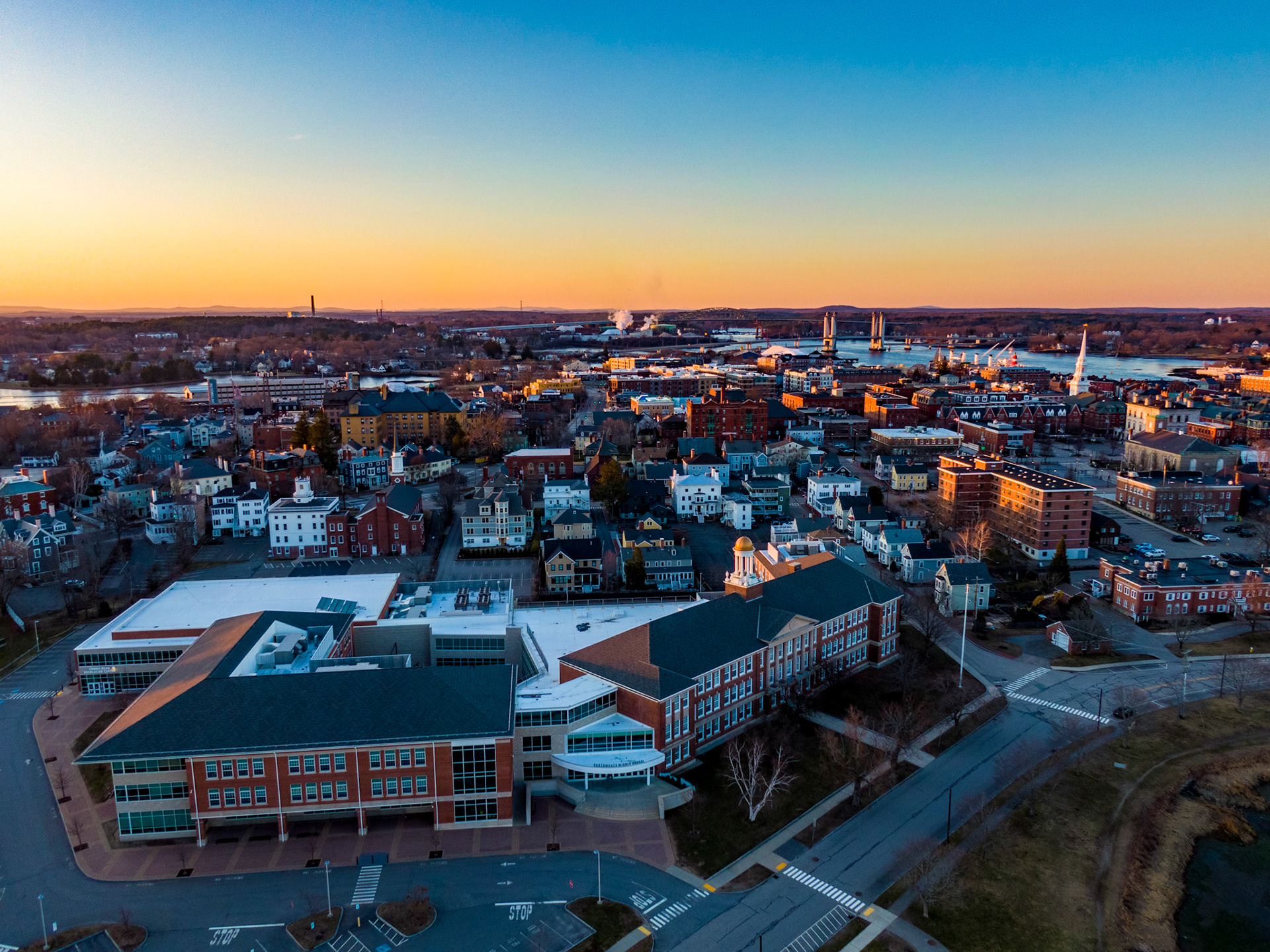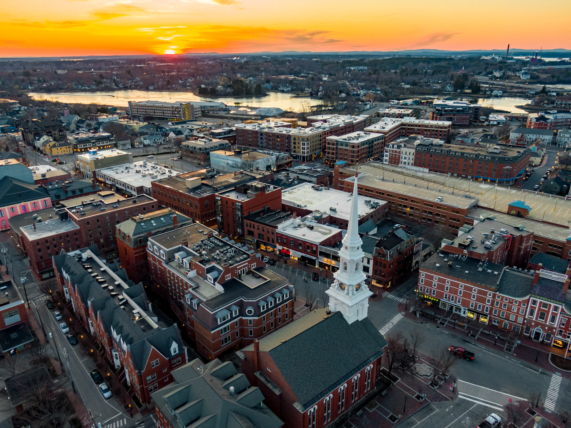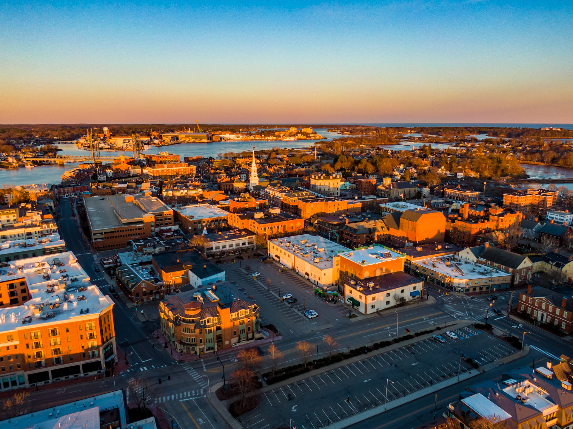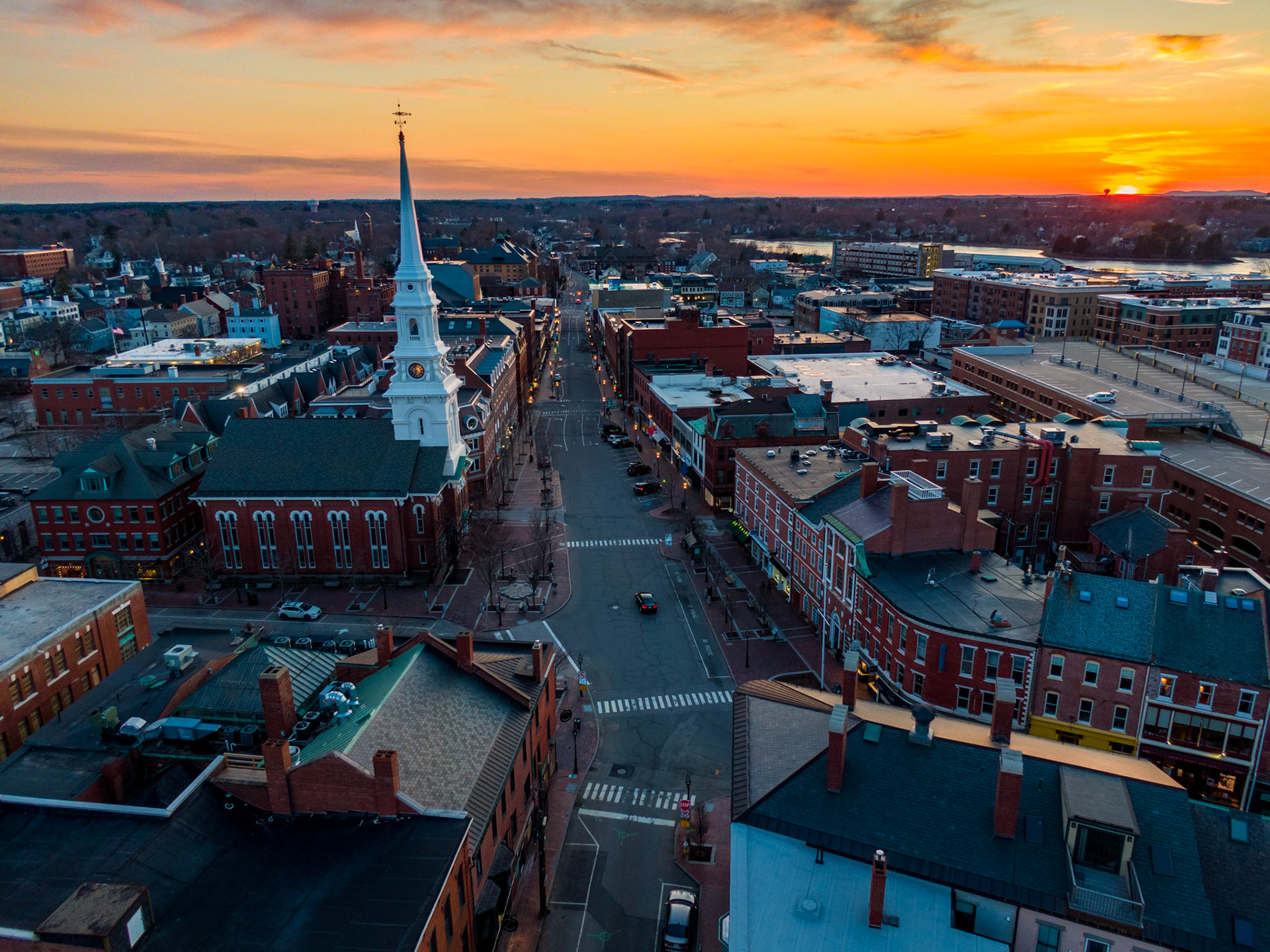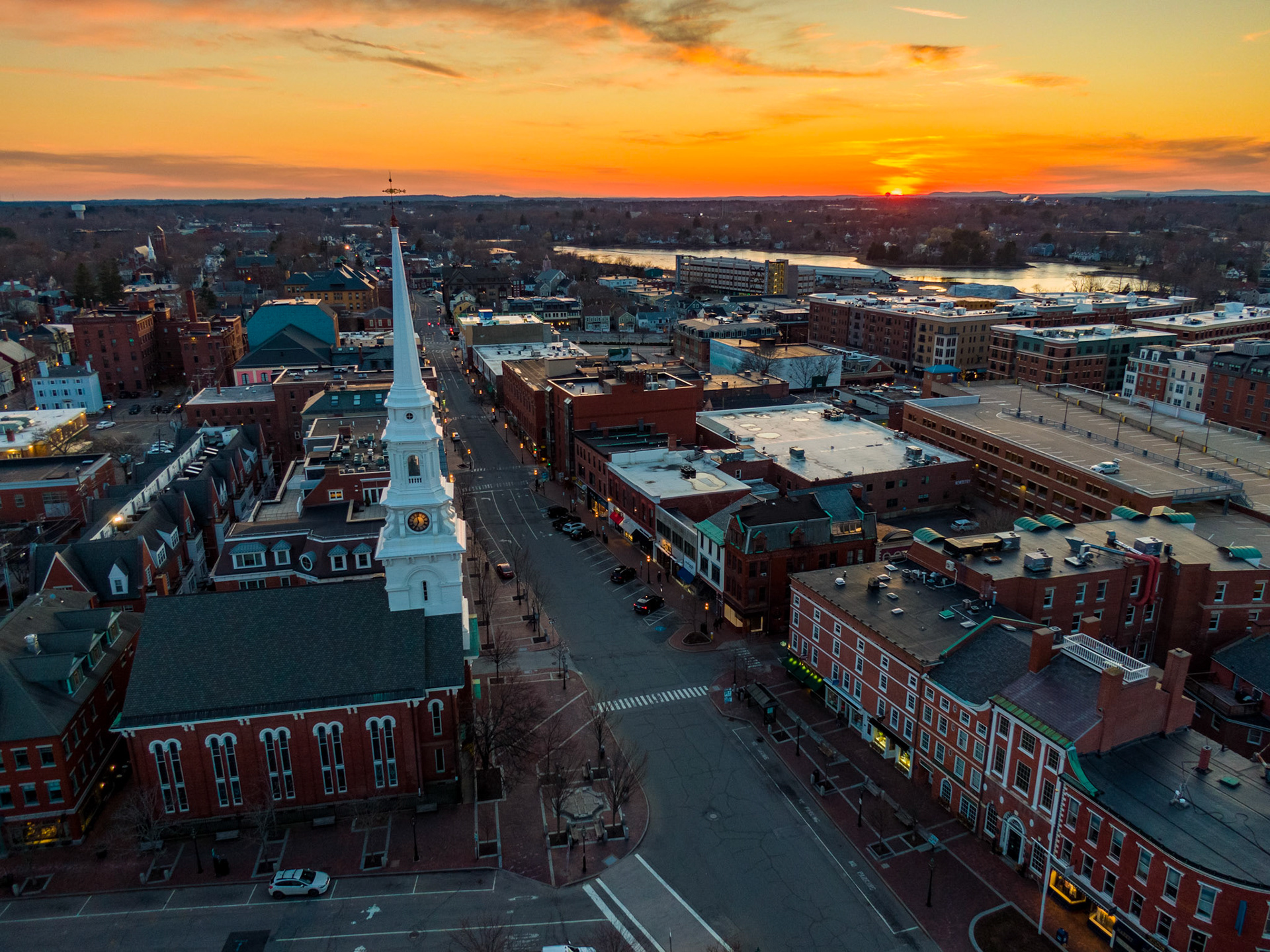 Downtown Portsmouth was photographed during sunset on March 22, 2020