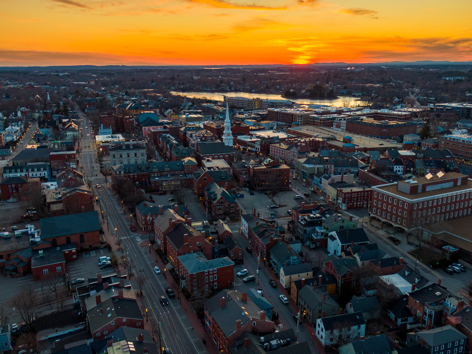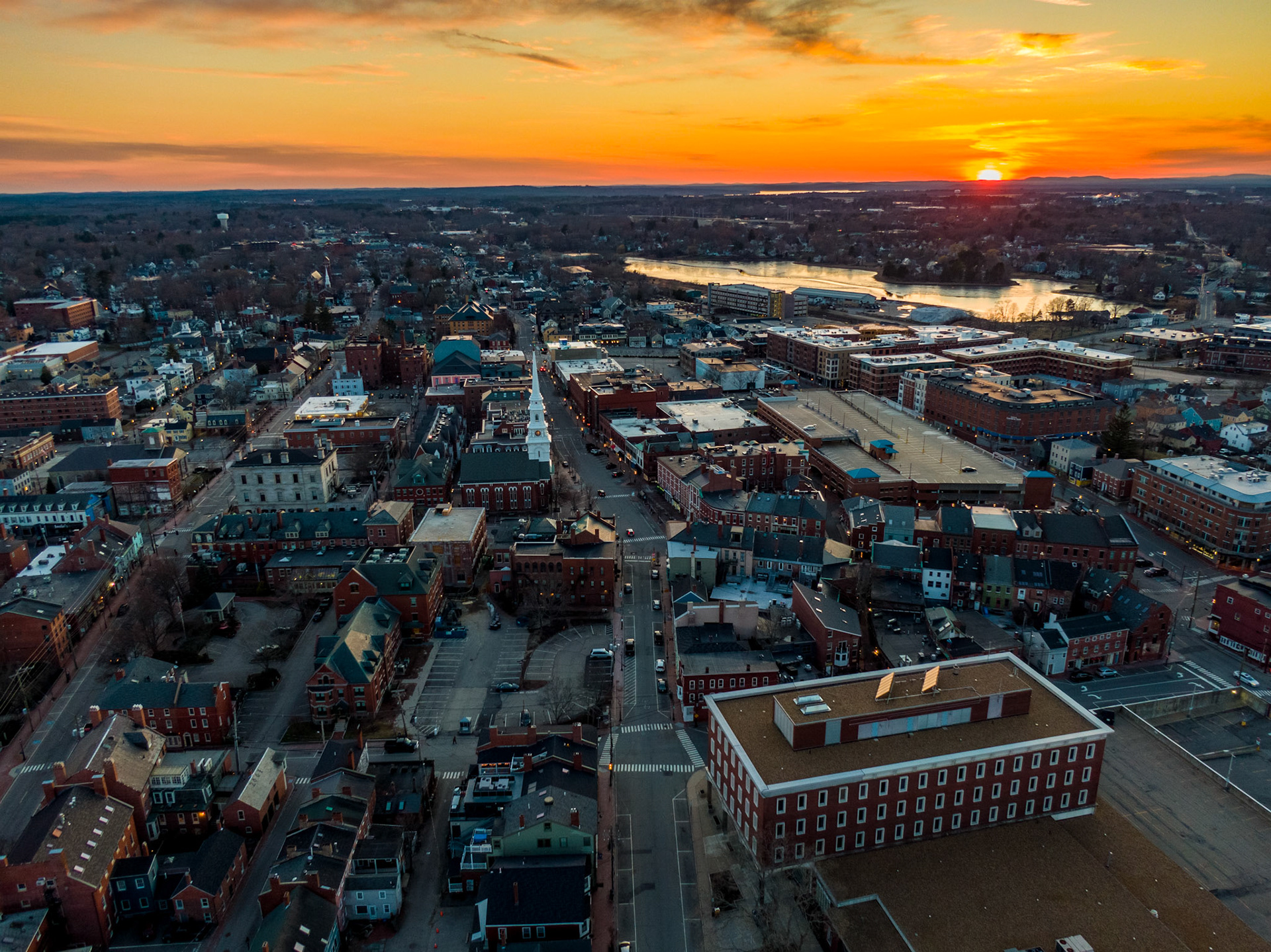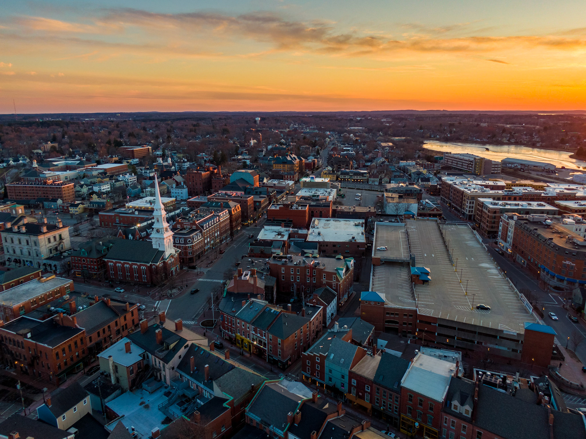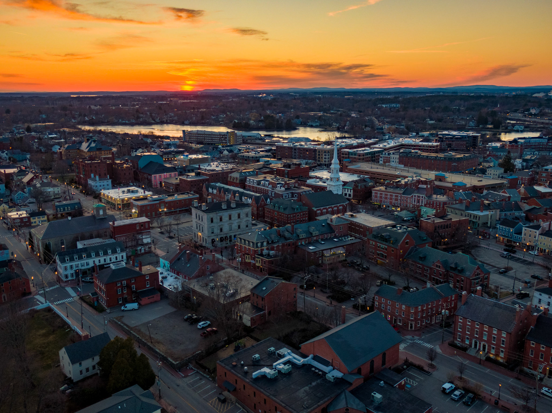 Downtown Portsmouth was photographed during sunset on March 22, 2020