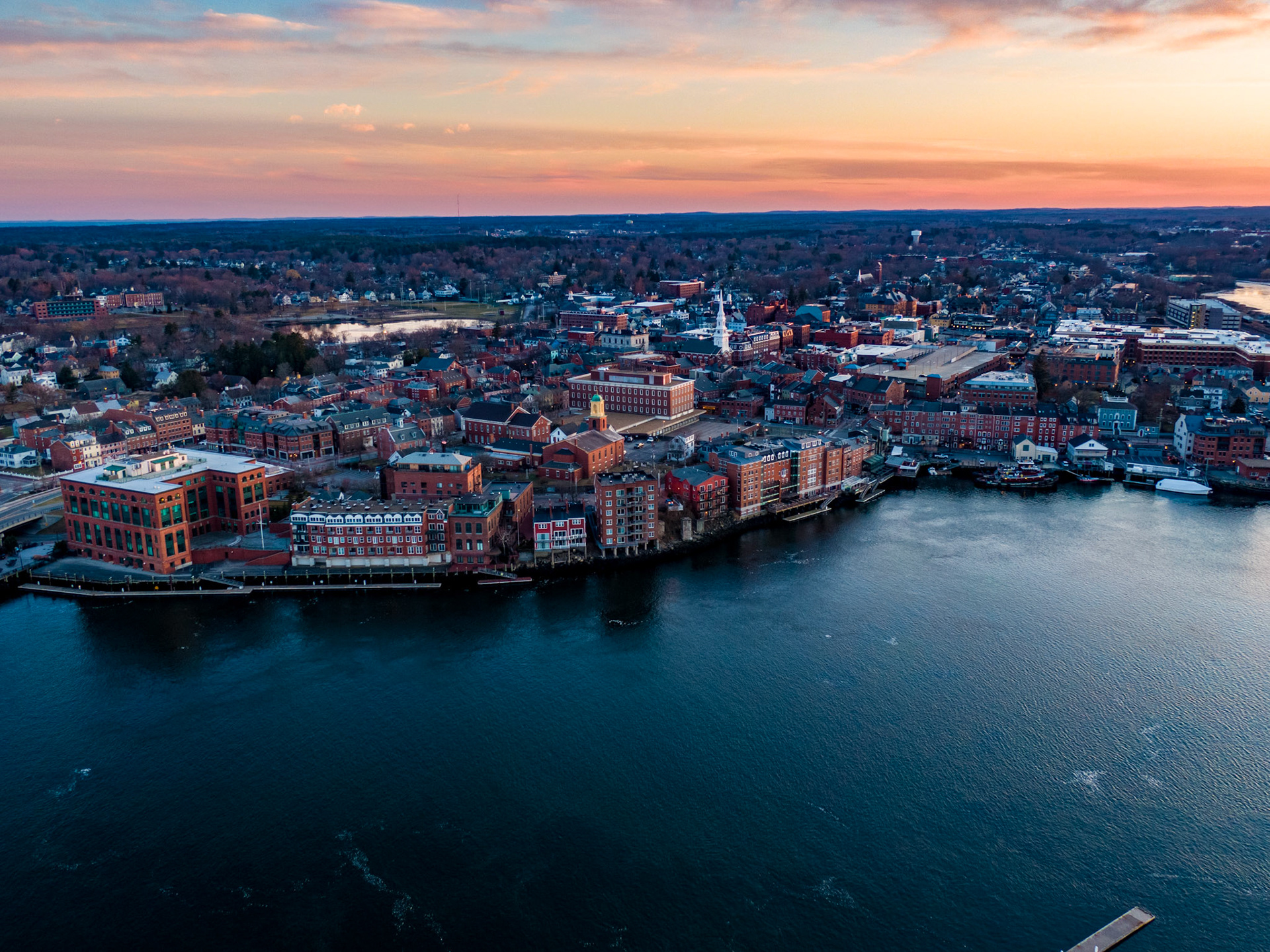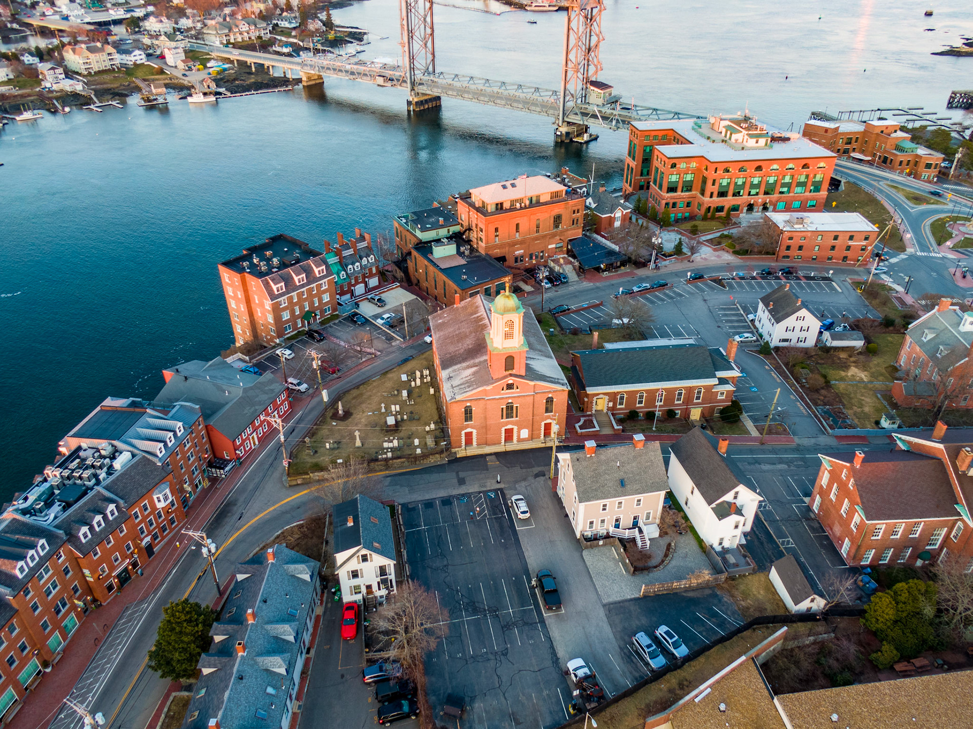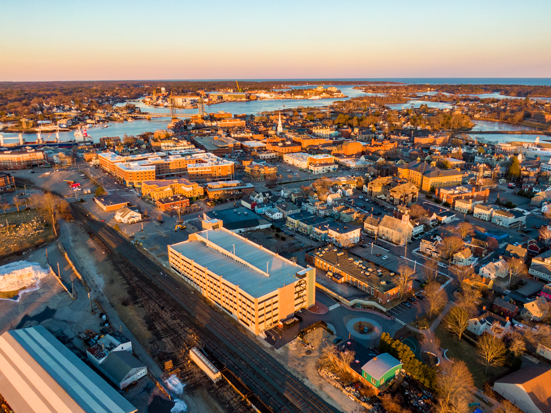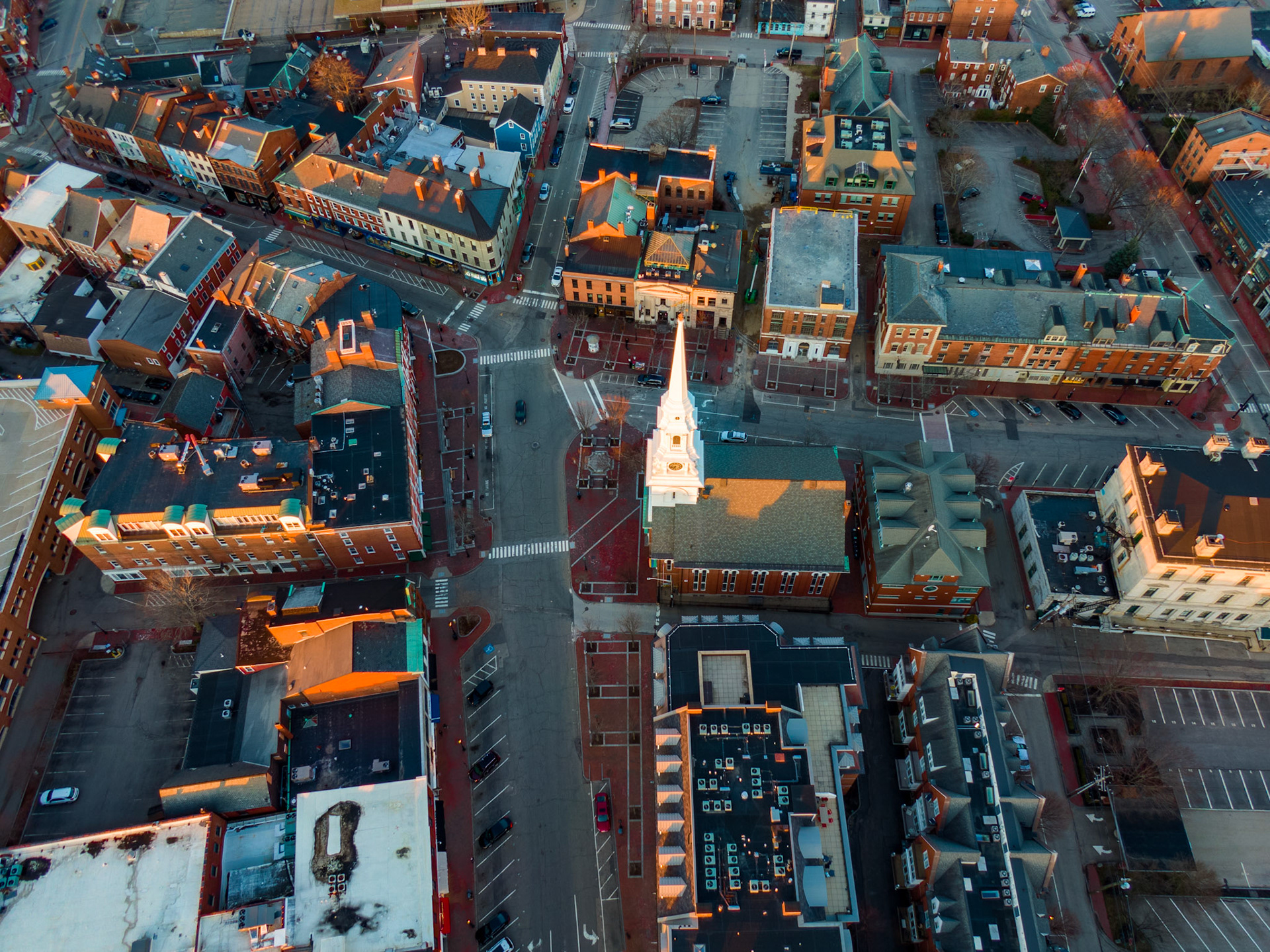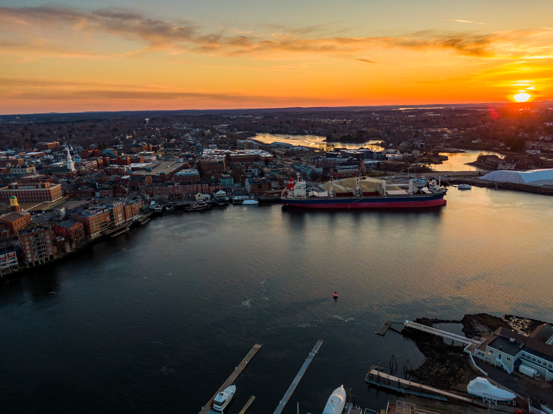 Downtown Portsmouth was photographed during sunset on March 22, 2020