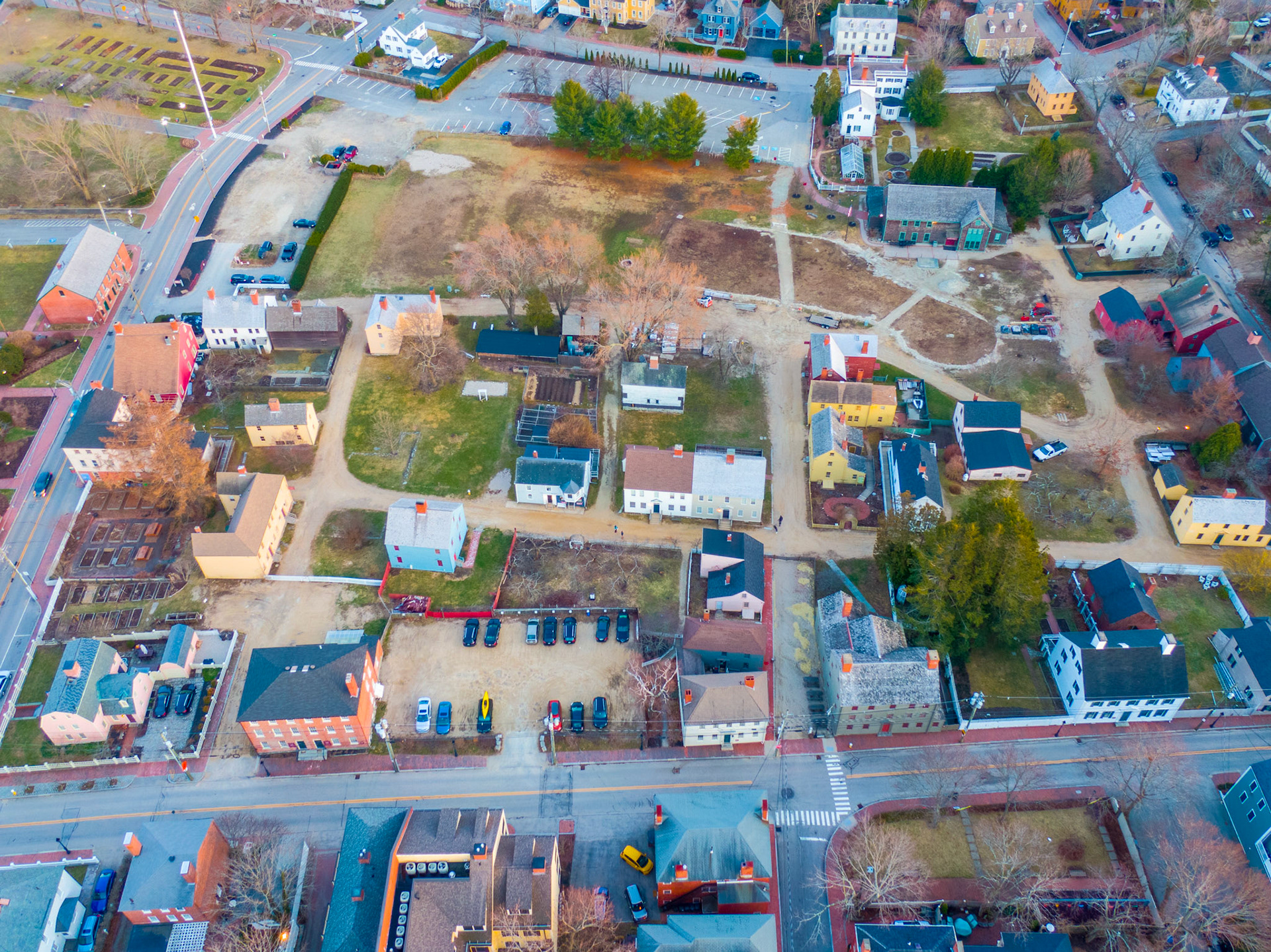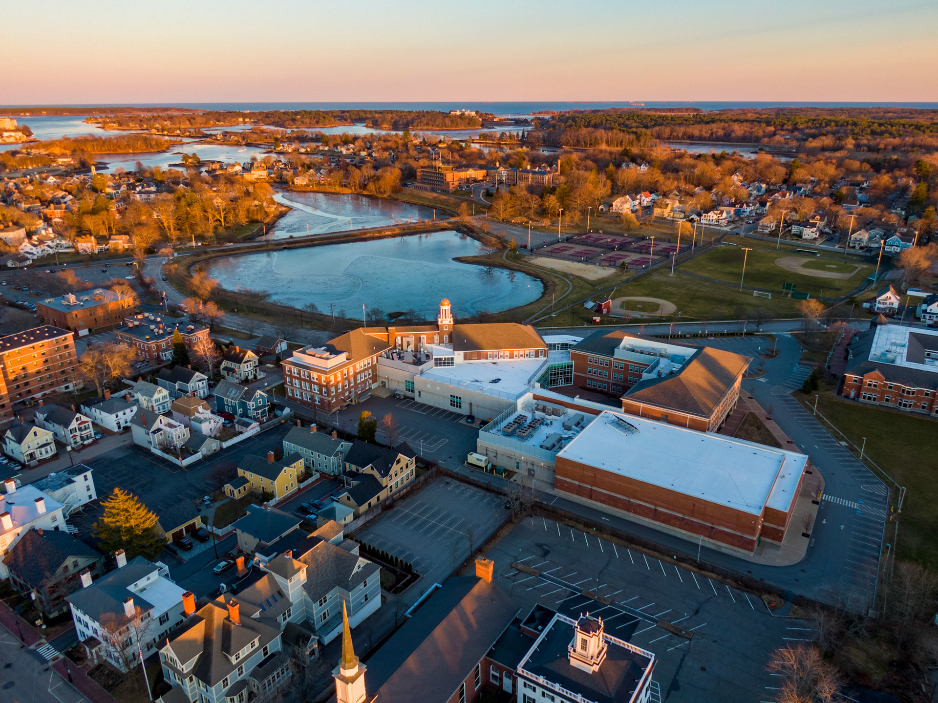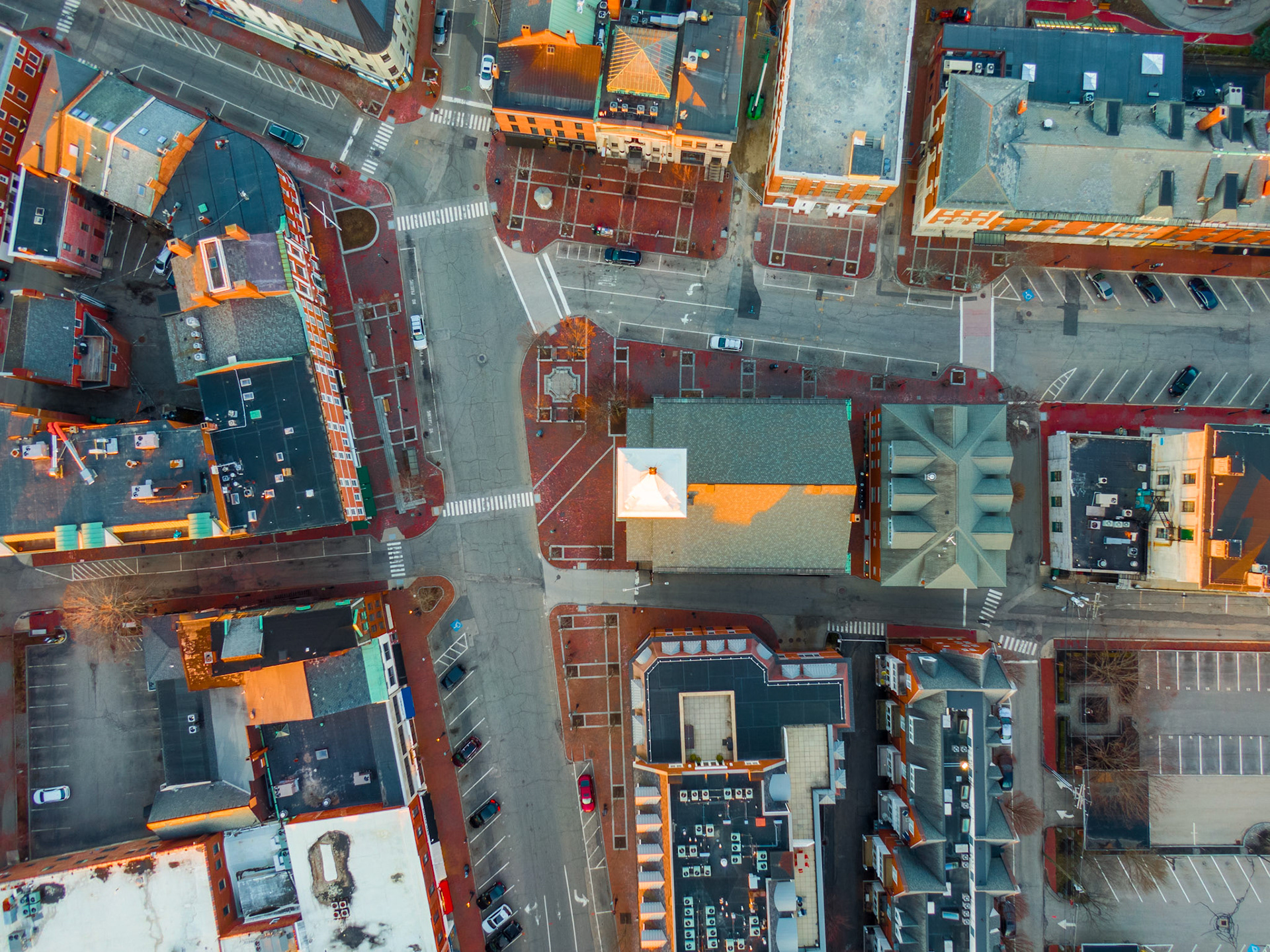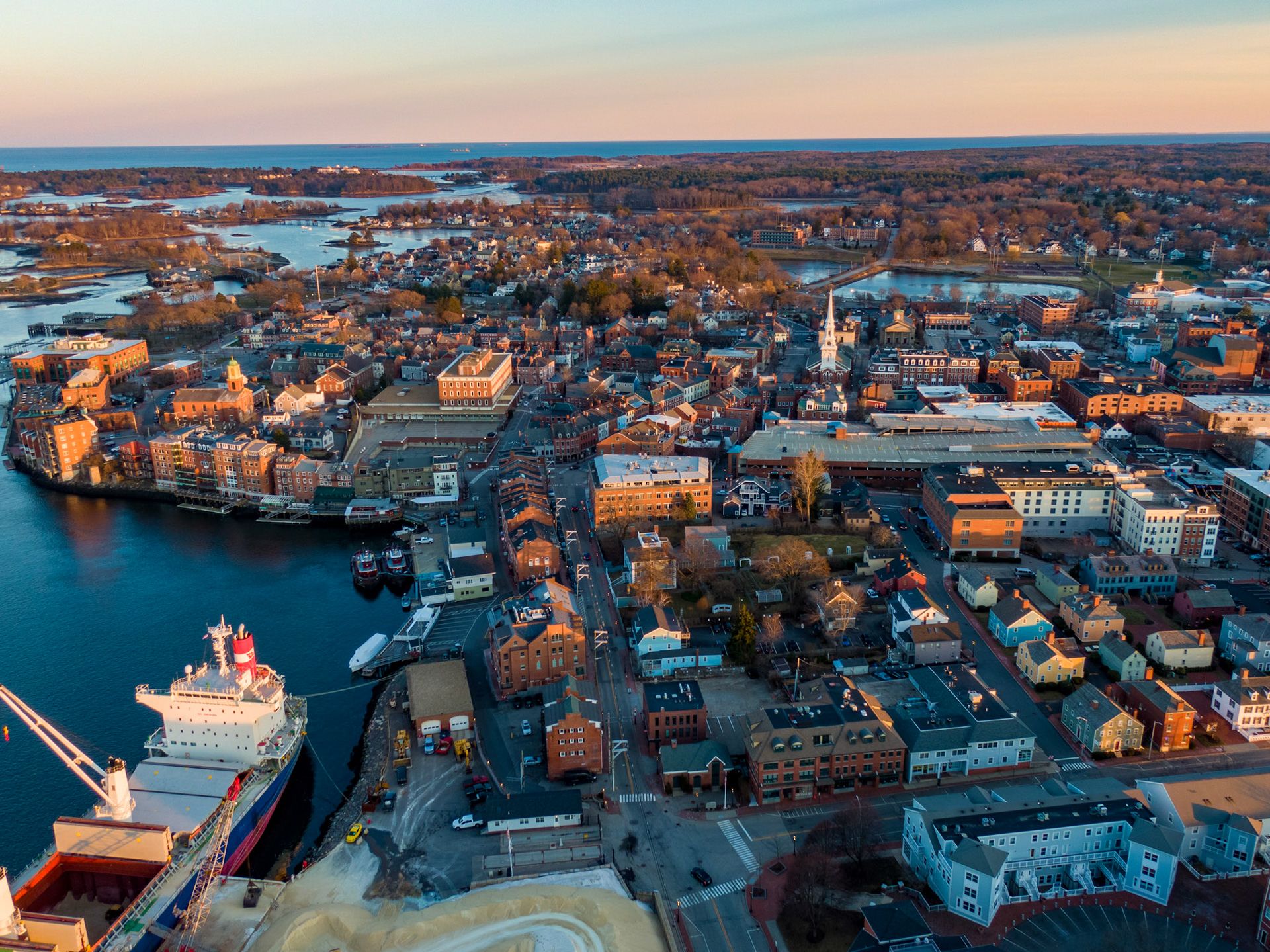 Downtown Portsmouth was photographed during sunset on March 22, 2020